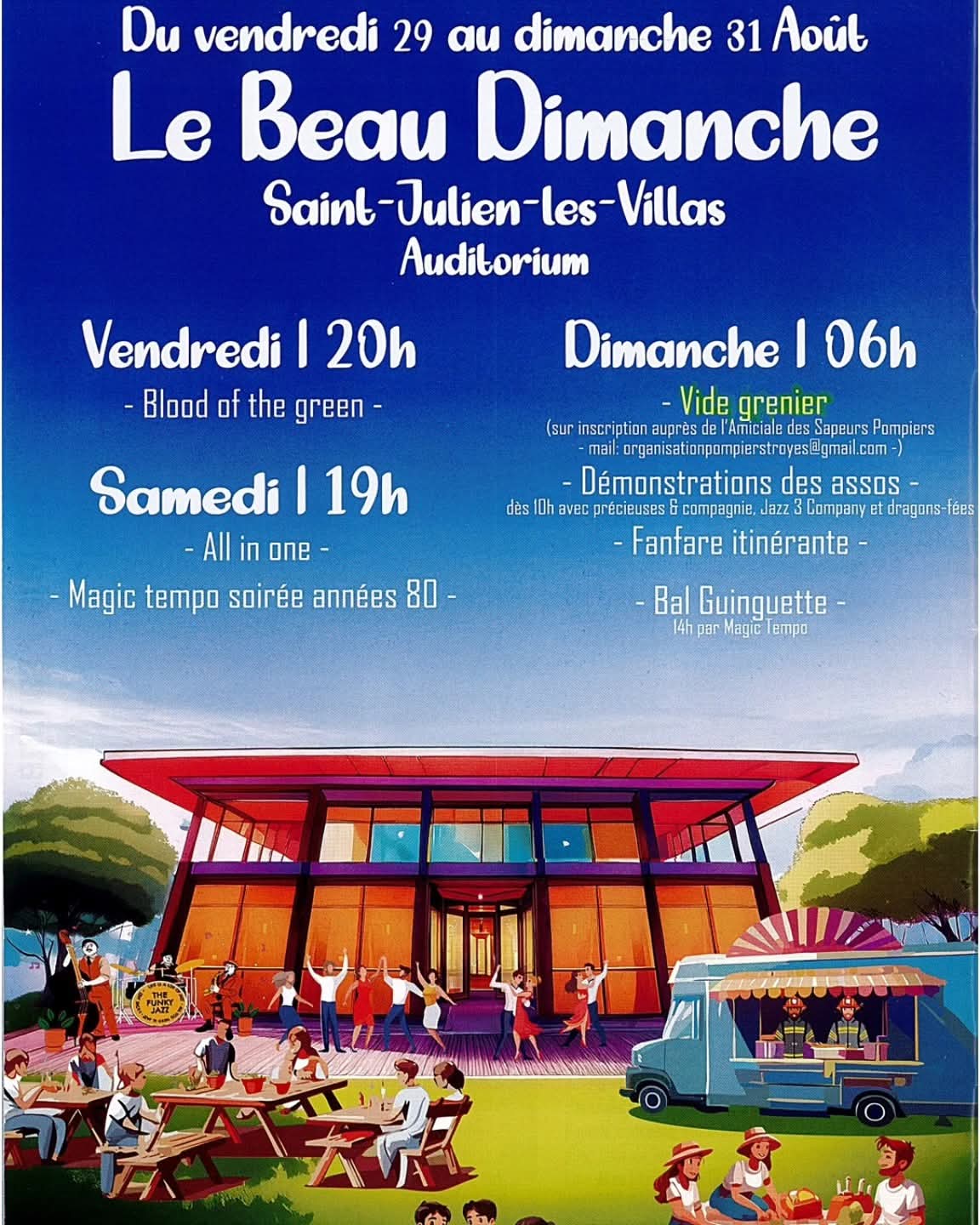 Les 30 et 31 aout 2025 : retrouvez-moi, toujours avec Magic Tempo, à Saint Julien les Villas, à l’auditorium ! Le samedi, ça sera soirée année 80 à partir de 19h, et le dimanche guiguette à 14h !